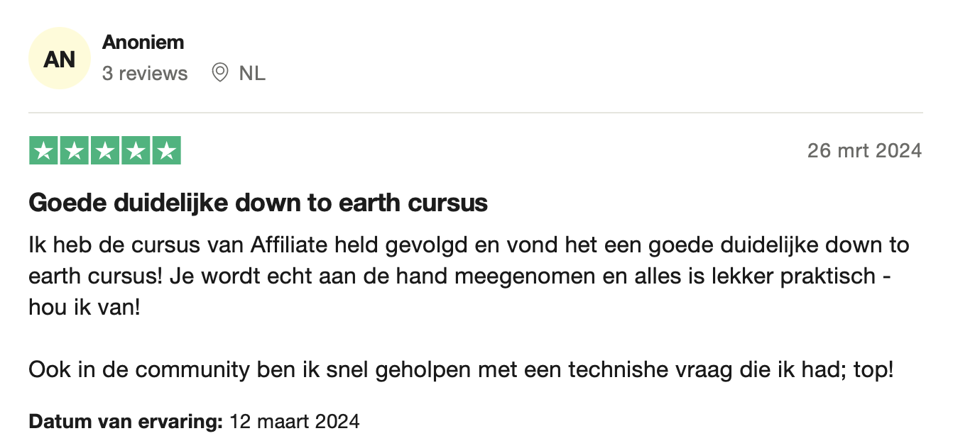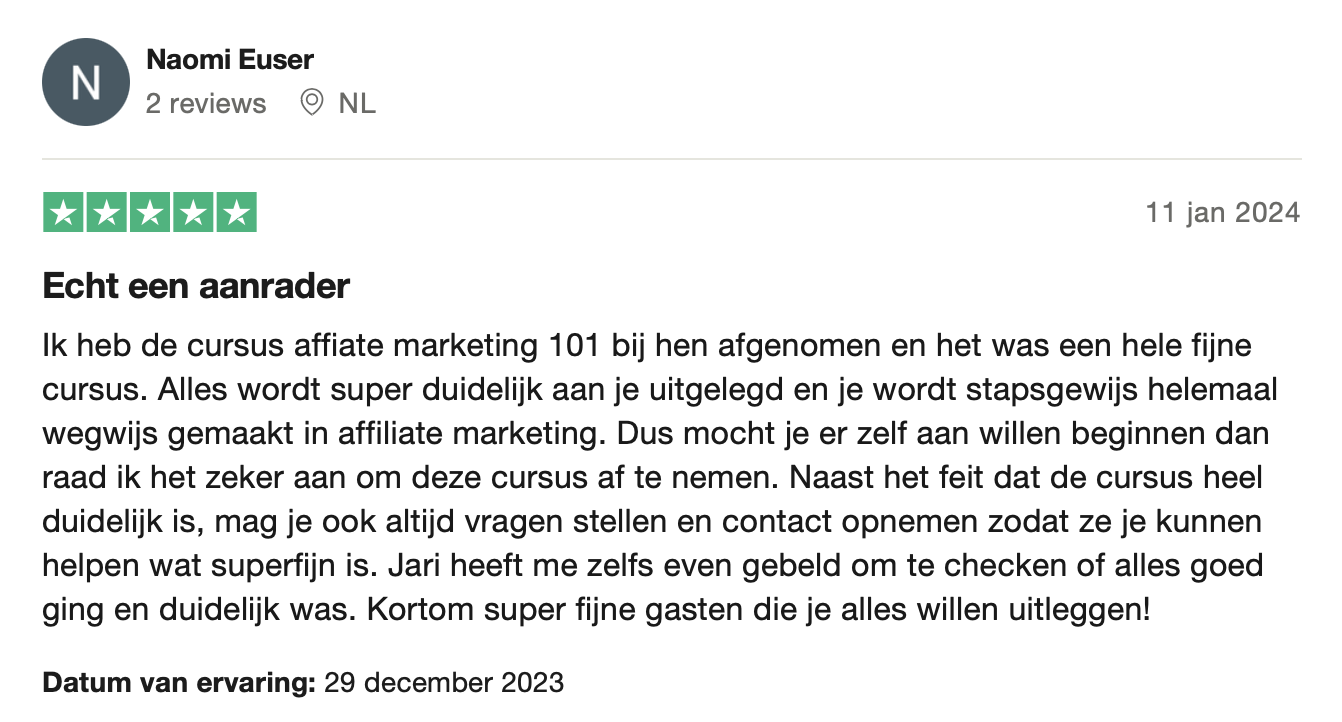 “Dit is wat ze te zeggen hebben over Affiliate Marketing 101 op TrustPilot“